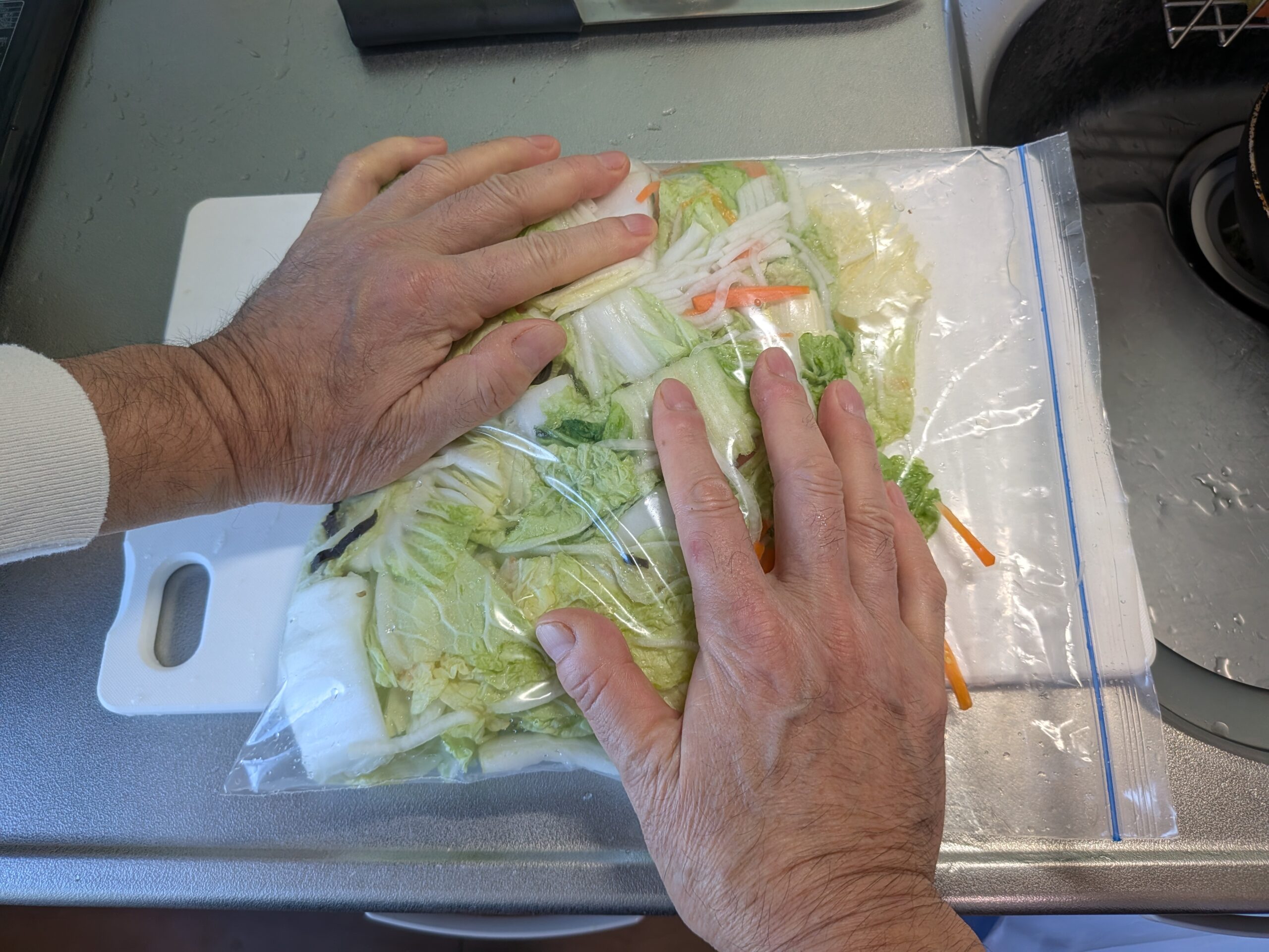コックまーちゃん 「浅漬け白菜」 2026年1月26日(月) ●白菜の浅漬けを作った ※朝のキッチン(自宅1/3) 1月3日に、白菜の浅漬けにトライしました。 (写真:台所厨房カウンター) 調理結果は、塩が多かったせいか少々塩辛かった。 「まー、失敗かな?」 後日、1月19日に再挑戦した。 結果、塩加減バッチリで今も美味しく食している。 ついでに、朝漬けキャベツも作りました。 コックまーちゃん記事を書いているけれど、 暇ではないのですよ。 忙しい時ほど、ストレス発散の為に良いと思う。 …何事にも、挑戦する!